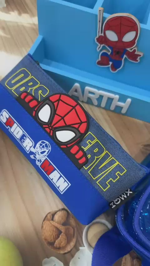 A fun and functional combo specially curated for superhero fans. This set includes a pen stand, a 3-zip jelly chest bag, and a matching pouch—perfect for school, travel, and everyday use. Available in four exciting themes: Iron Man, Captain America, Spiderman, and Unicorn. Ideal for gifting and daily essentials.